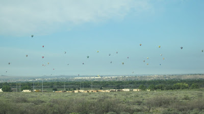 Outside of Albuquerque and were met by a sky filled with hot air balloons. We forgot that this weekend is the first of the Balloon Fiesta. Those balloons are really something to watch. They were all around us as we drove by Fiesta Park. I understand they have about 550 balloons from all over the world.
