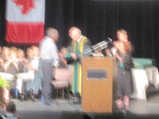 It was quite a ceremony along with a full graduation from the Lambton College of Applied Arts and Technology. It had a procession of the 500 or so graduates. As with most graduations it was long but finally they read 'Meghan Baker-Warner' and announced "This certificate is being conferred posthumously and being accepted by her father Bill Baker".